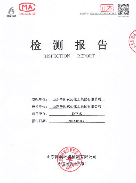 山東華陽(yáng)農(nóng)藥化工集團(tuán)有限公司地下水檢測(cè)報(bào)告